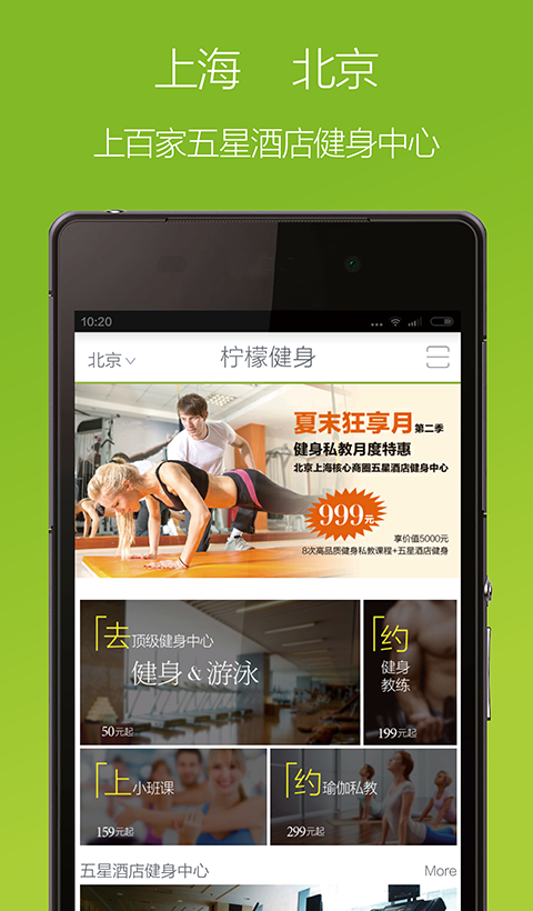 健身次卡:北京上海上百家五星級(jí)酒店健身中心健身50元/次起,靈活購買消費(fèi)。更多健身場館隨時(shí)更新。