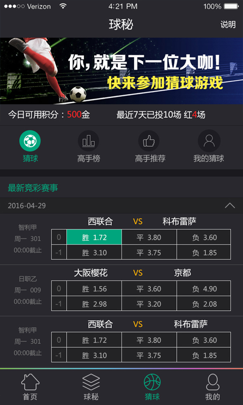 球秘app,是一個專門提供競彩、足彩、籃彩等體育賽事推薦的APP產(chǎn)品。 球秘app吸引多位明星店主,競彩專家、跟單紅人、草根達(dá)人傾情加入,專家根據(jù)比賽雙方的戰(zhàn)斗實(shí)力、賽事背景、盤口水位變化、主力資金流向、高頻交易等數(shù)據(jù),為用戶投注時提供準(zhǔn)確的參考方向,幫助用戶提高購彩中獎幾率。同時球秘為草根達(dá)人提供一個展示自己推薦預(yù)測能力的平臺。