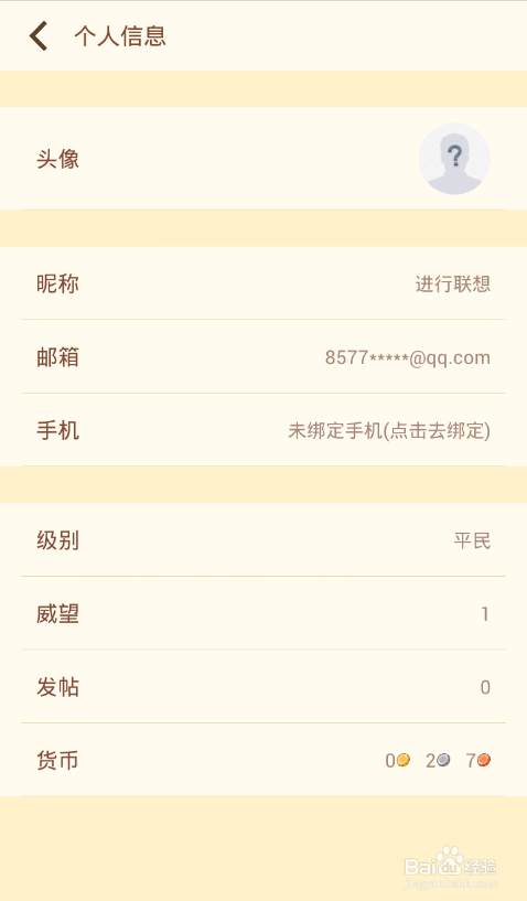 如果還沒有登陸的話就先登陸上。在這里點擊你的賬號選項,就可以看到你注冊的個人信息了。