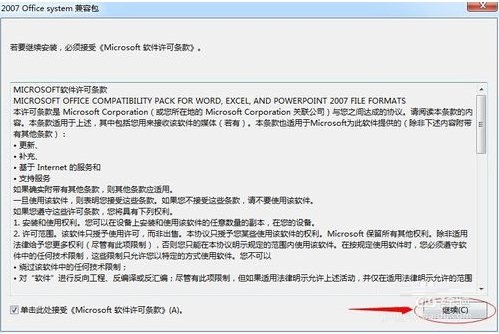 2、勾選接受條款,然后點(diǎn)擊“繼續(xù)”。