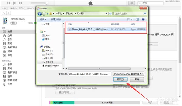 4、iTunes會彈出對話窗-->請選擇已經(jīng)下載好的固件-->點(diǎn)擊更新-->等待iTunes運(yùn)行。