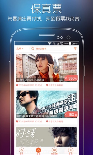 交易擔(dān)保:先看演出后付款,移動支付快捷省心;
