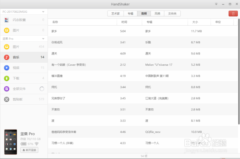 點(diǎn)擊后,電腦則于手機(jī)連接成功。就可以使用電腦瀏覽錘子手機(jī)的內(nèi)容。比如相冊(cè)、音樂等。