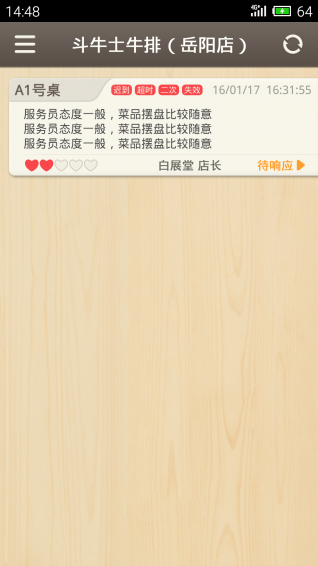 熱桌科技專注為餐飲商戶提供離店管理服務(wù)。熱桌App幫助餐廳做客人滿意度調(diào)查,幫助餐廳發(fā)現(xiàn)問(wèn)題,尋找餐廳的管理改進(jìn)方向,并可通過(guò)熱桌現(xiàn)場(chǎng)及時(shí)發(fā)現(xiàn)客人的不滿當(dāng)場(chǎng)解決,從而挽留客人。因此,我們可以幫助餐廳收集35%的用戶滿意度調(diào)查,節(jié)省20%的服務(wù)員人力成本,幫助餐廳提高30%的回頭客。【功能介紹】