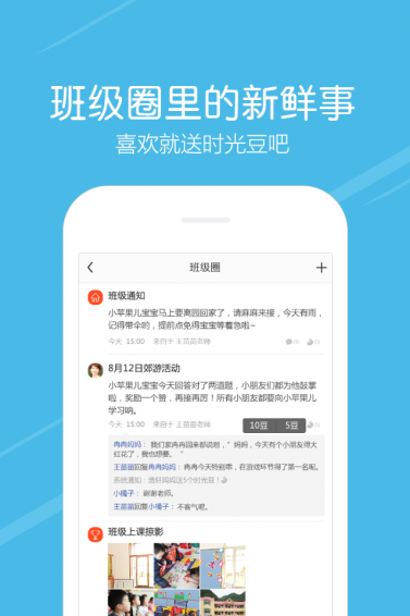 4、班級互動面對萌萌的寶寶們,你可以發(fā)表你的想法、你的心情,給個贊讓寶寶再接再厲!班級圈子內(nèi)與家長互動互評,溝通看法和收集反饋,促進(jìn)客戶關(guān)系管理水平。