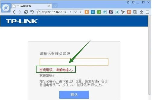 3、接下來根據(jù)路由器背面的IP地址打開路由器后臺管理登陸界面,隨便輸入密碼,此時將顯示錯誤信息,記下此錯誤信息,可用于作為“未登陸成功”特征識別碼。如圖所示,“密碼錯誤,請重新輸入”可作為特征碼。