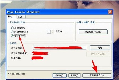 3、選擇啟動后解凍,然后選擇應(yīng)用并重啟。