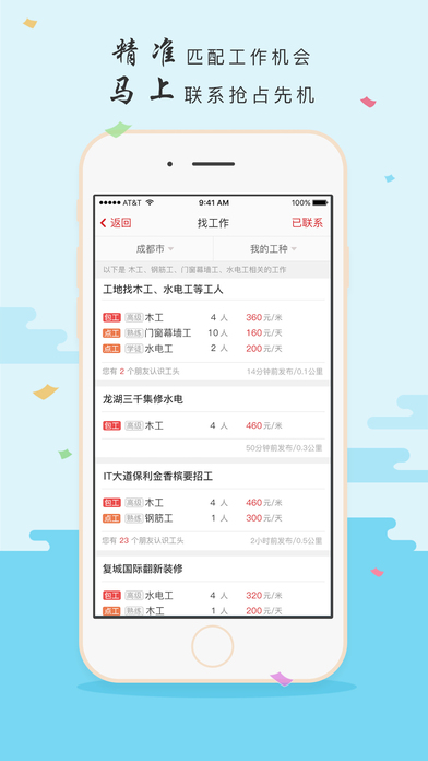 1、海量工作、項目輕松找;2、隨時記工、輕松對賬;