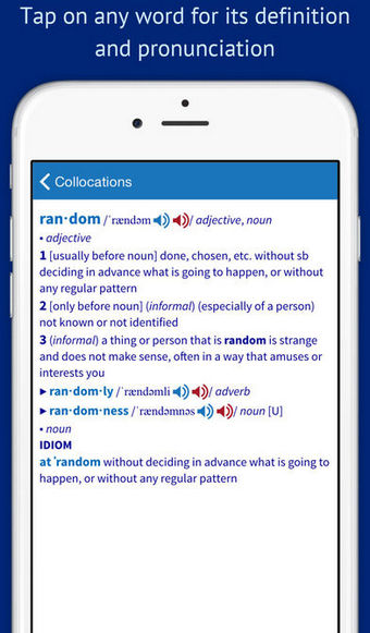 該詞典列出了英式英語和美式英語中所有最常用的搭配詞組,引導(dǎo)你找到最適合語境的詞語搭配。