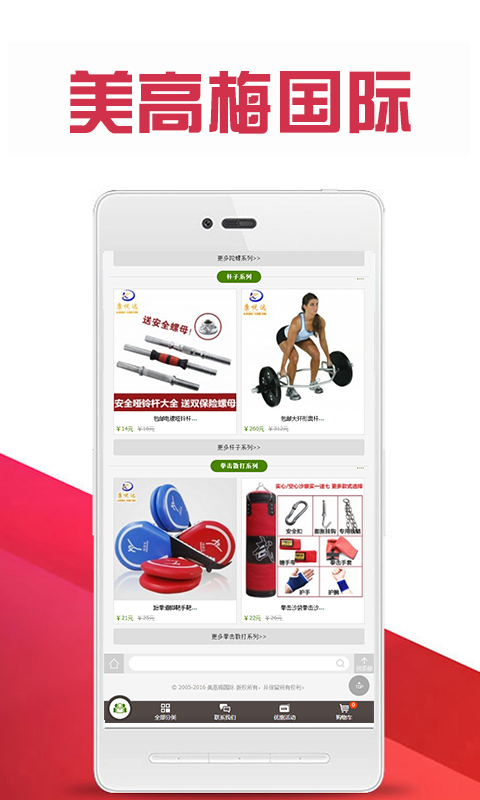 美高梅國際體育用品商城,一家研發(fā)銷售體育用品、體育器材、健身器材及戶外用品等在線銷售平臺(tái)。美高梅國際體育用品商城成立于2015年12月,產(chǎn)品線在不斷發(fā)展壯大中,現(xiàn)整合線下體育產(chǎn)品資源,為從事體育相關(guān)企業(yè)提供新興的線上營銷方式,是一家在冉冉升起的體育用品商城。