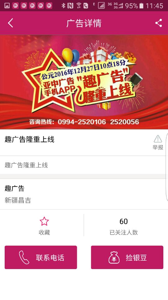 亞中廣告APP是一個(gè)集分類信息廣告、生活服務(wù)等為一體的手機(jī)廣告互動(dòng)平臺, 該平臺用戶可以通過看廣告獲取平臺銀豆和金豆, 然后再用銀豆和金豆發(fā)布廣告并可參與趣轉(zhuǎn)轉(zhuǎn)、趣唰唰、趣生活等欄目, 使用戶真正意義上實(shí)現(xiàn)了快樂看廣告、輕松看廣告!