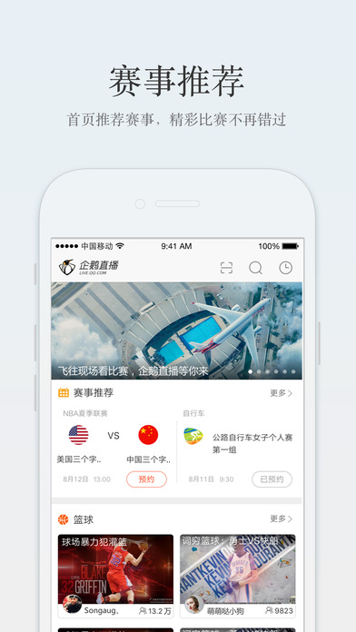 首頁直播:推送當(dāng)前最最最熱門的體育賽事直播內(nèi)容。體育分類:NBA,籃球,足球,臺球,乒乓球,網(wǎng)球,羽毛球,健身,舞蹈,賽車…,每一個體育分類下,均有主播在做體育直播。