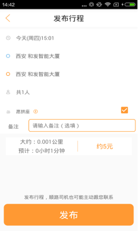 1.在發(fā)布頁面發(fā)布您的出行信息或者心情狀態(tài),加上你的美照,吸引車主或搭車人的目光。