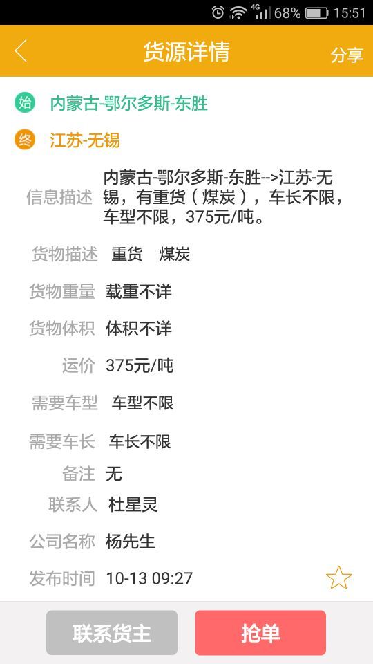 司機(jī)收藏感興趣的貨源信息,并能實(shí)時(shí)跟蹤貨主信息。