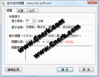迷你定時提醒工具可以設(shè)置時間間隔循環(huán)提醒,指定時間提醒,不過時間間隔不要太近了,這樣的工具其實不適合給編程工具者,很容易打斷思路,工作上不能太投入認(rèn)真。也容易讓Boss不喜歡 。