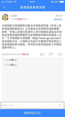 銷售也可以發(fā)布對商業(yè)信息的懸賞需求并支付費用,同行可提供懸賞的信息并且獲取費用,平臺收取服務中介費。
