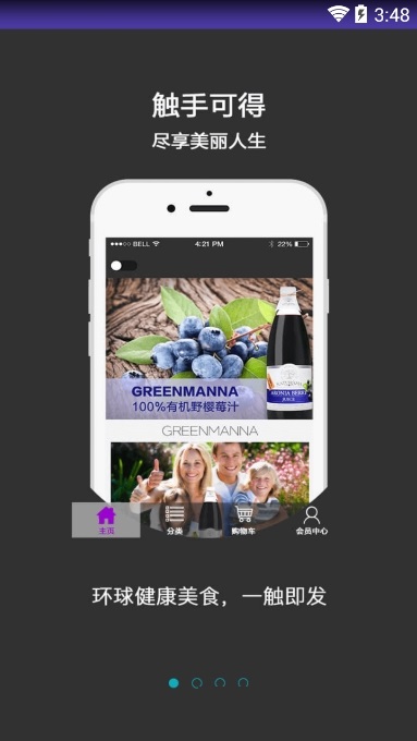 野櫻莓,是云天團(tuán)旗下主營GreenManna野櫻莓汁的購物類APP。APP設(shè)計采用紫色為主色系,研發(fā)理念是“一切以用戶體驗為宗旨”。野櫻莓APP設(shè)計初衷:野櫻莓立足于云天團(tuán)“健康、美味、營養(yǎng)、安全”的理念下,處于跨境電商火熱的時代,為了使消費(fèi)者更快捷、方便的能及時購買到GreenManna野櫻莓汁,開發(fā)了APP軟件這一購物渠道。