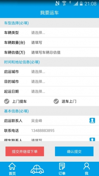 2.車商下訂單,添加提車地址和送車地址
