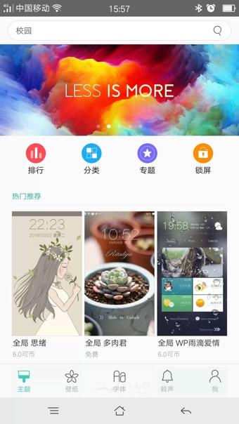 主題——【頂尖設(shè)計(jì)師作品匯聚】涵蓋簡(jiǎn)約精品、炫酷質(zhì)感、手繪插畫、動(dòng)漫卡通、文藝清新、帥哥美女、唯美古典、熱門影視等多種風(fēng)格。