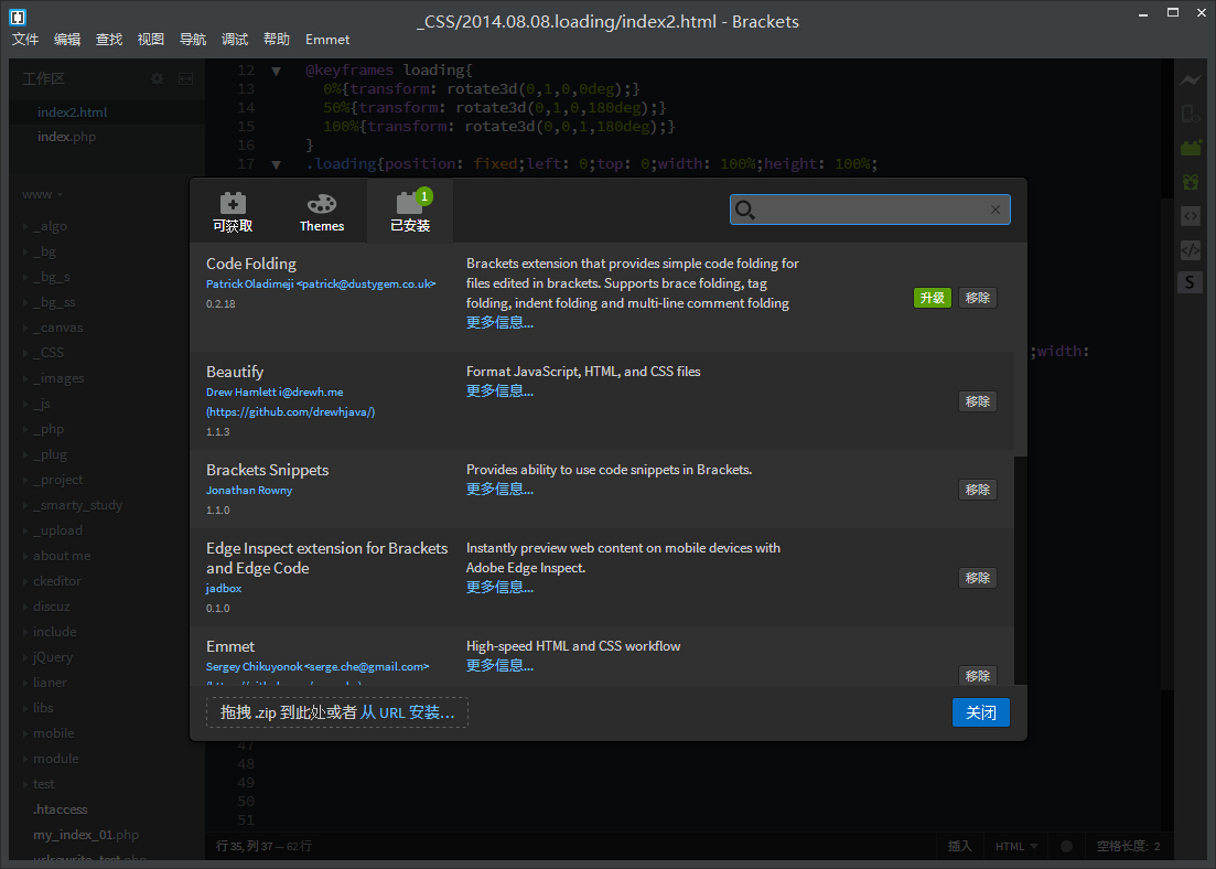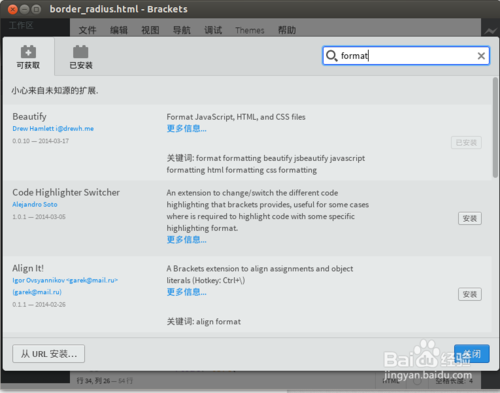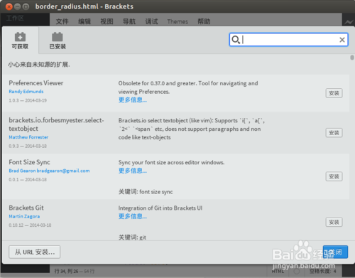 其他的編輯器比如sublime之所以強(qiáng)大是因?yàn)橛泻芏嗖寮闹С?,可以打造最適合自己的編輯器,那Brackets有沒有插件呢?經(jīng)過一番尋找終于找到:
