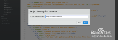 打開 文件 -> 項(xiàng)目設(shè)置,然后輸入預(yù)覽的地址,例如:http://localhost/semantic,這樣你在使用實(shí)時(shí)預(yù)覽的時(shí)候,會(huì)基于這個(gè)地址去預(yù)覽文件。