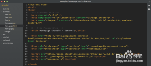 一般開始一個(gè)項(xiàng)目,你可以去新建一個(gè)目錄,把項(xiàng)目所需求的文件放在這個(gè)目錄下面,Brackets 支持打開整個(gè)目錄,通過編輯器邊欄上的樹形結(jié)構(gòu),可以方便的管理項(xiàng)目文件 。