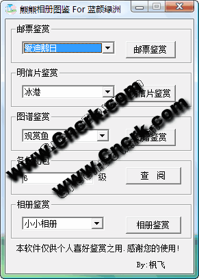 此軟件是將大家花了大量的Q幣合成的相冊(cè)郵票等一一例出,讓所以還沒(méi)有合成,或準(zhǔn)備合成的朋友鑒賞該圖冊(cè)的魅力