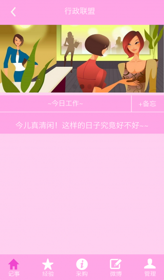 行政聯(lián)盟app是專(zhuān)為公司行政人員打造的應(yīng)用,行政人員能隨時(shí)在平臺(tái)上定制各種工作計(jì)劃,能查看和采購(gòu)公司所需的物資,更能交流各種工作經(jīng)驗(yàn),是行政人員的好幫手。