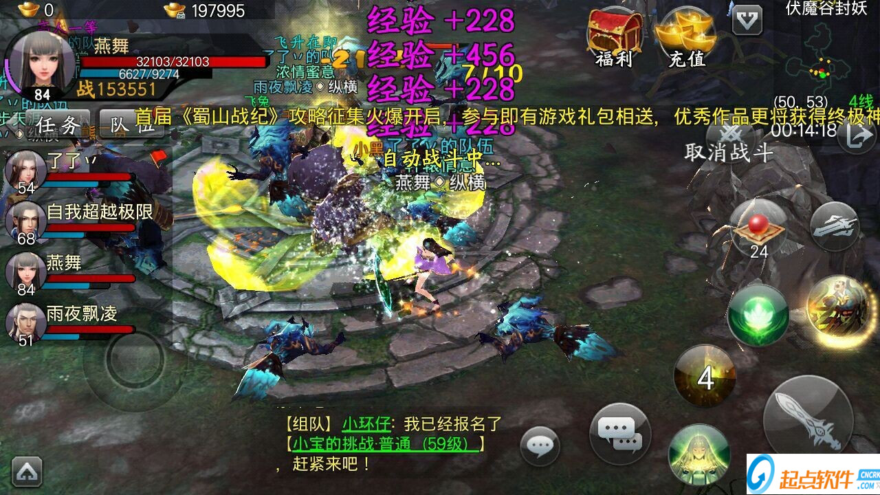 3,45多人挑戰(zhàn)副本赤魂夢境。每日一次?;陦艟潮倦m然要消耗10綁定元寶,但經(jīng)驗收獲十分豐厚。進本時記得使用活躍度禮包中獲得的益元丹,使用后在赤魂夢境中可獲得雙倍經(jīng)驗。