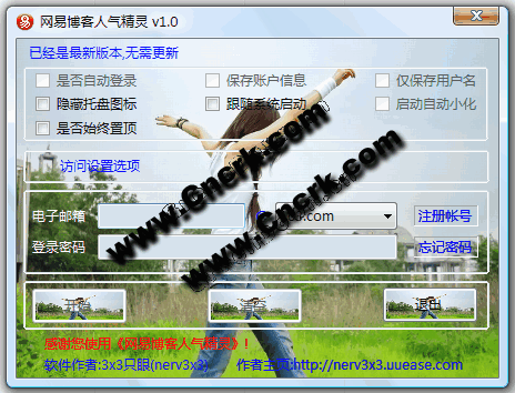 網(wǎng)易博客人氣精靈采用多線程封包發(fā)送式刷新,只需不斷循環(huán)向您的頁面發(fā)送訪問請求,無需下載或打開您的網(wǎng)易博客頁面,直接提升您的網(wǎng)易博客的訪問人氣.
