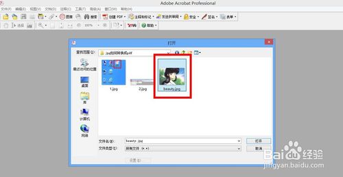 在查找范圍中,找到待轉(zhuǎn)換的jpg文件所在路徑,選中文件打開(kāi)