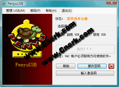 PenyuUSB 可以控制 USB 大容量存儲(chǔ)設(shè)備以免于被病毒傳播或被竊取數(shù)據(jù)。管理員使用密碼即可啟用或禁用 USB 設(shè)備,非常適用于學(xué)?;虼髮W(xué)計(jì)算機(jī),也適用于商用用途。比如:阻止學(xué)生使用未授權(quán)的 USB 設(shè)備;避免敏感的商業(yè)數(shù)據(jù)經(jīng)由 USB 設(shè)備傳播或被竊取