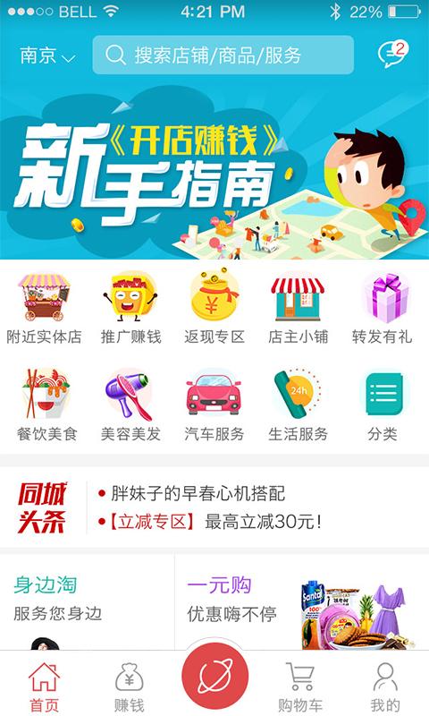 基于地理位置,匯聚各類實體店鋪、商品和服務。開店賺錢,隨意挑選實體店商品,創(chuàng)建個性店鋪,銷售得提成。