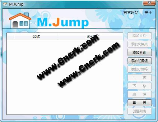M.Jump 是一款基于Windows 7的Jumplist功能開發(fā)的快速程序啟動軟件,借用系統(tǒng)提供的跳轉(zhuǎn)列表功能,創(chuàng)建個(gè)人專屬的程序列表,類似于早期Windows版本中的Quciklaunch,M.Jump只是讓它“豎”起來而已!新版支持同時(shí)添加自定義分組和任務(wù)組,支持添加文件夾,支持修改文件圖標(biāo)