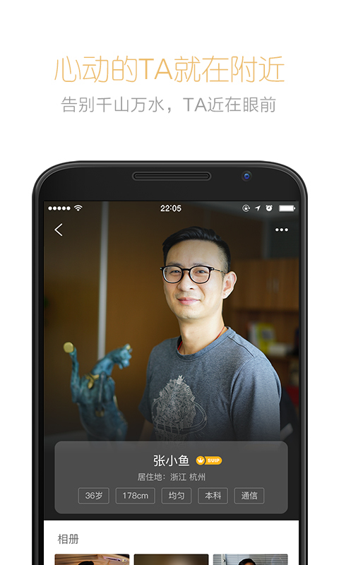 1.同城約會,基于LBS實時定位,隨時遇見身邊氣質(zhì)女神,成功男神2.人工審核,采用人工審核機(jī)制,對資料,照片進(jìn)行審核,保障交友真實安全