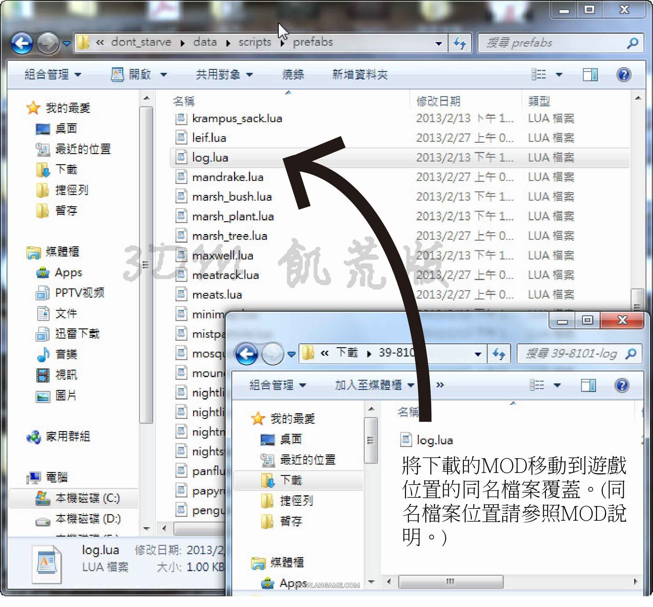 (有些MOD內(nèi)含多個lua檔案,需要覆蓋的檔案地址也不同,移動檔案時須多加注意。)