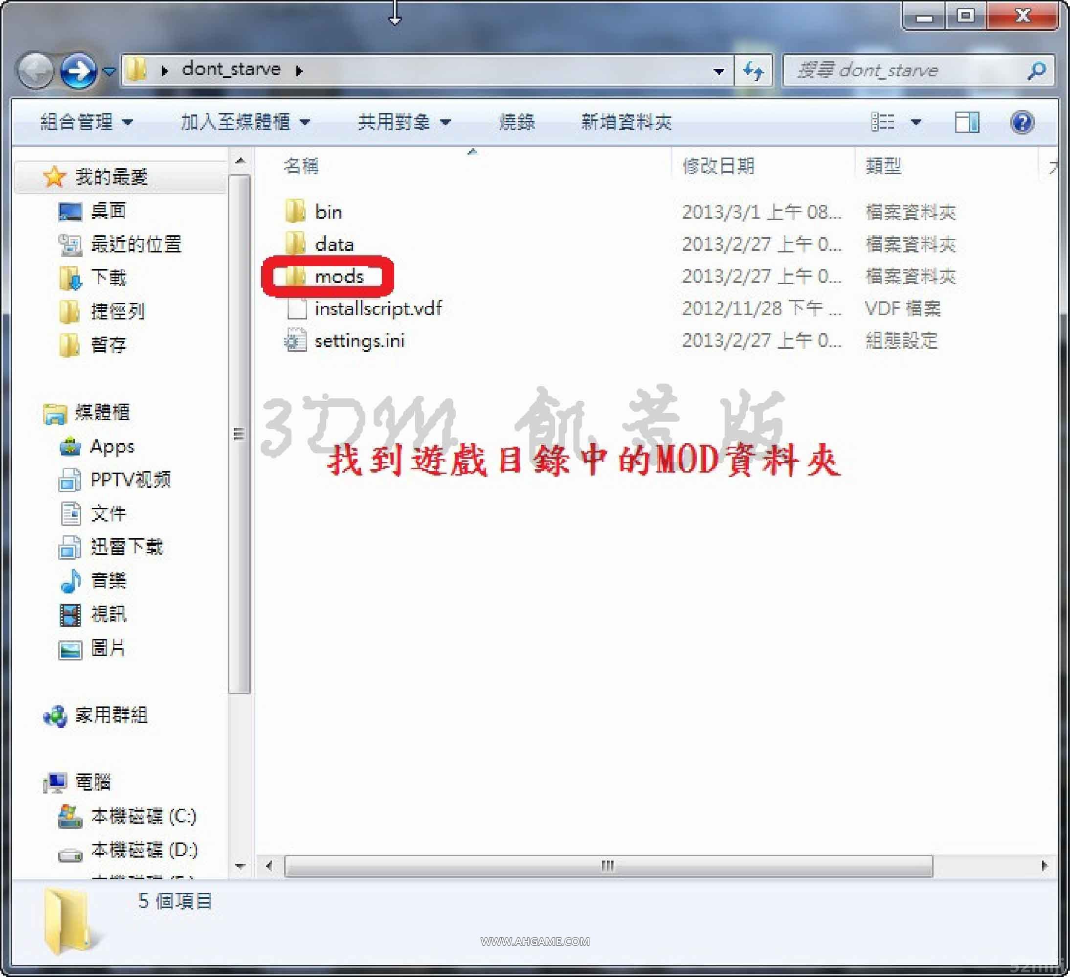 1.按照MOD說明的位置,找到要修改的游戲檔案