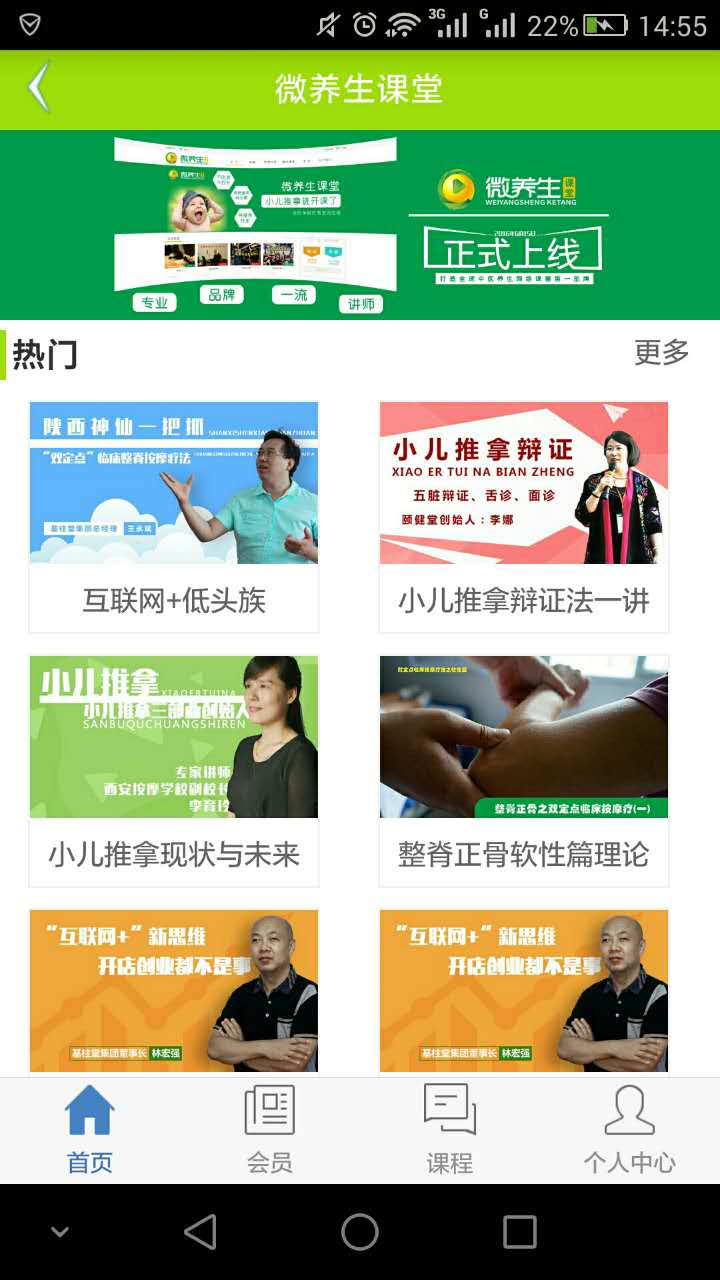 冬日養(yǎng)生中醫(yī)課堂app在做什么立足于實用性和適應(yīng)市場的要求,課堂精選各類養(yǎng)生課程,與多名中醫(yī)行業(yè)權(quán)威專家、教授等一同合作,課程數(shù)量已達1000+,課時總數(shù)超5000,涵蓋中醫(yī)養(yǎng)生、按摩手法、推拿手法、小兒推拿手法、拔罐手法、瀉血手法、艾灸手法、足療手法、食療養(yǎng)生、各類針法等20余大門類,其中不乏數(shù)量可觀、制作精良的獨家課程。從用戶養(yǎng)生、用戶創(chuàng)業(yè)、用戶就業(yè)等多個維度,為用戶打造實用的學(xué)習平臺。團隊介紹這里,匯聚了一群有夢想的人。我們,或來自醫(yī)院醫(yī)師,擁有國家三甲醫(yī)院等國家知名大醫(yī)院的多年工作經(jīng)歷;我們,或來自國內(nèi)行業(yè)專家,在養(yǎng)生行業(yè)里探索養(yǎng)生的創(chuàng)新技術(shù);我們,擁有互聯(lián)網(wǎng)、醫(yī)療、教育等不同背景,卻將同打造中國最優(yōu)質(zhì)的在線養(yǎng)生技能學(xué)習平臺作為了共同使命;我們希望,通過我們的努力,能夠讓更多人獲得受到一流職業(yè)技術(shù)教育的機會,而通過教育,讓我們的民族真正獲得從內(nèi)在騰飛的力量。在這里,在微養(yǎng)生課堂,成千上萬的人已經(jīng)或正在改變生活,這正是我們的價值所在。