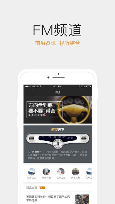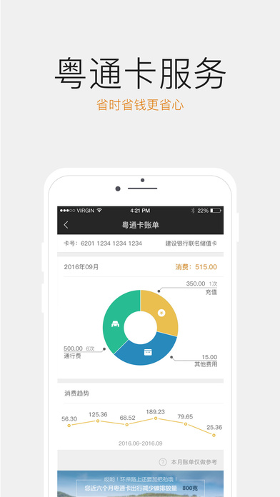 【粵通卡服務(wù)】在線充值粵通卡,查詢(xún)實(shí)時(shí)消費(fèi)賬單,首創(chuàng)高速消費(fèi)提醒;一鍵綁定粵通卡,減去輸入麻煩;【FM視聽(tīng)盛宴】全新上線FM頻道,涵蓋汽車(chē)、財(cái)經(jīng)、生活方方面面資訊,給予車(chē)主高級(jí)、純粹的視聽(tīng)享受;