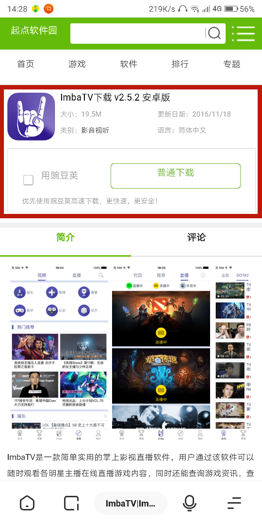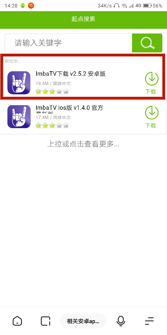 2.進(jìn)入后搜索ImbaTV,選擇第一個(gè)進(jìn)入安卓版下載頁面