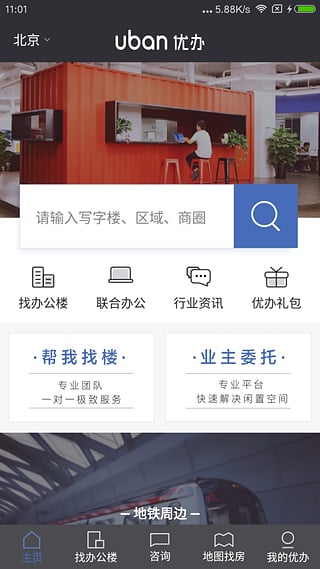 優(yōu)辦通過官方網(wǎng)站、官方APP(優(yōu)辦)及官方微信三大線上服務(wù)平臺連接業(yè)主、客戶和經(jīng)紀(jì)人,為企業(yè)客戶提供辦公室租賃以及后續(xù)入駐服務(wù),幫助企業(yè)快速找到最滿意的辦公室。并創(chuàng)新地采用3D看房、VR看房、720°全景實勘等前瞻技術(shù)及滴滴專車免費接送等尊享服務(wù),為用戶創(chuàng)造極致的辦公租賃體驗;優(yōu)辦更為業(yè)主提供樓盤房源免費實拍及上線服務(wù),大幅提升出租速度,降低空置時間。【軟件特點】