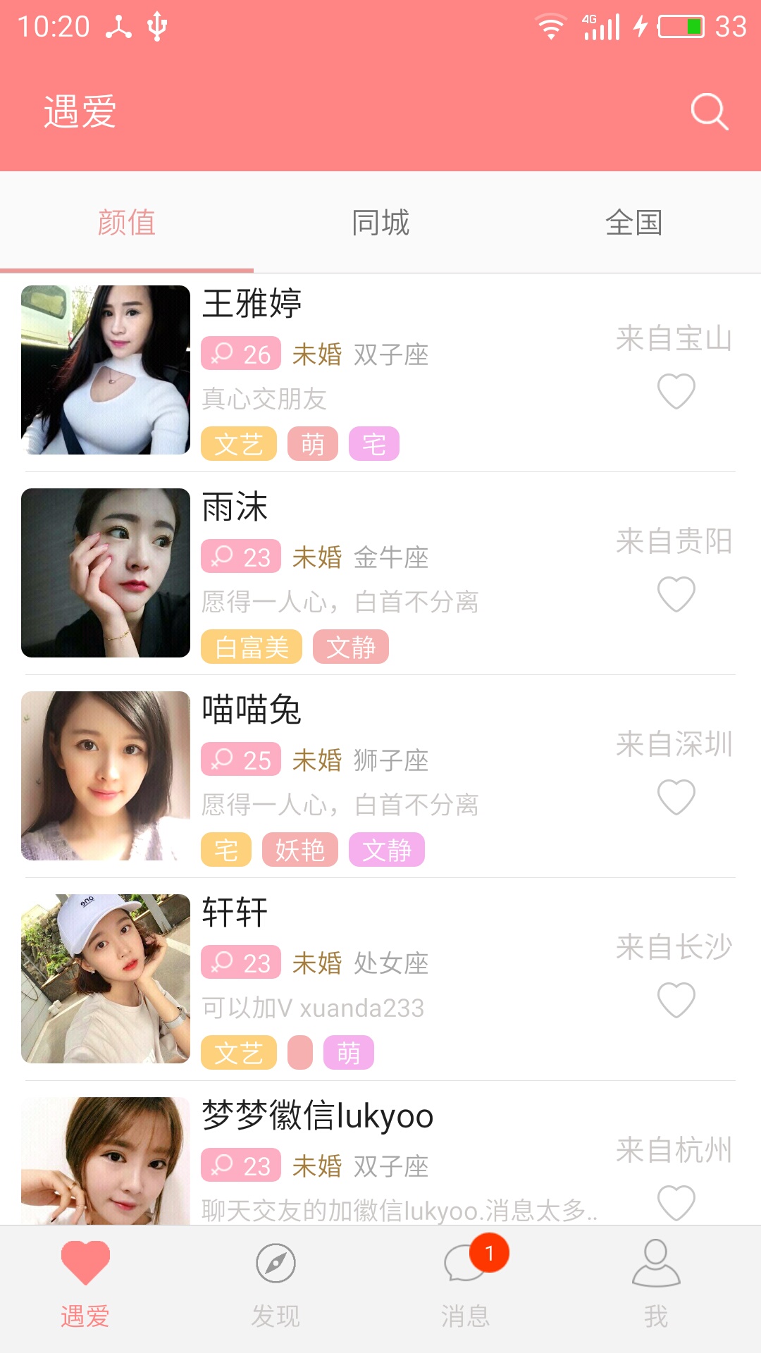 單身的你,或是想尋找生命中的那個(gè)Ta,或是想認(rèn)識有意思合拍的人,無奈工作太忙,生活圈子又太小。在匆忙的城市里,每天都有無數(shù)人在擦肩而過,卻又沒有方法彼此相識。探愛是國內(nèi)專為單身人士打造的婚戀社交產(chǎn)品,是同城男女約會(huì)聊天必選應(yīng)用,約會(huì)靚女邂逅帥哥,告別寂寞擺脫單身!