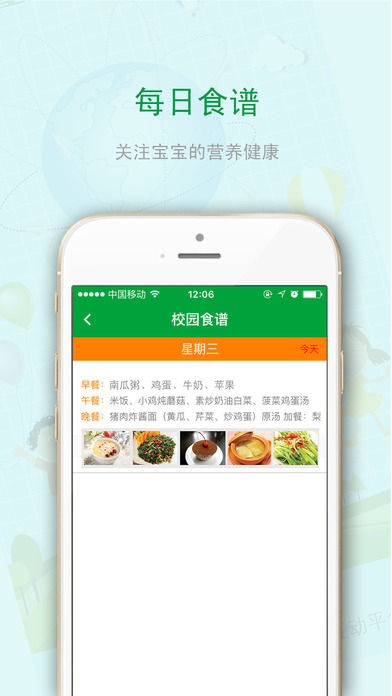 作業(yè):孩子及家長能在手機(jī)上收到老師所發(fā)布的作業(yè),讓家長能更好的幫助孩子學(xué)習(xí)監(jiān)督作業(yè)。食譜:孩子在學(xué)校所吃的食物都在這里,讓家長更放心孩子們的成長。