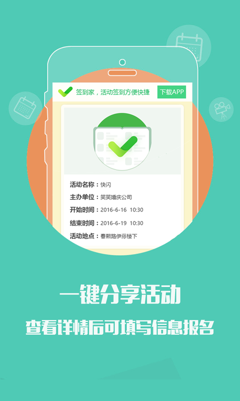 簽到家app是一款專為活動(dòng)組織者準(zhǔn)備的簽到應(yīng)用,用戶可以通過簽到家app輕松完成活動(dòng)組織、邀請(qǐng)、簽到、抽獎(jiǎng)等眾多工作,為你不再為組織工作感到煩惱。