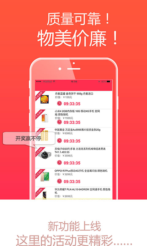 一元得寶把每件獎(jiǎng)品平分成若干“等份”出售,每份1元,當(dāng)一件獎(jiǎng)品所有“等份”售出后,將根據(jù)老時(shí)時(shí)彩的開(kāi)獎(jiǎng)數(shù)據(jù)并配合透明、固定的計(jì)算規(guī)則計(jì)算出一名幸運(yùn)者的得寶號(hào)碼,該幸運(yùn)者即可獲得此獎(jiǎng)品。幸運(yùn)者,可以用少量的價(jià)錢獲得高價(jià)值的商品。一元得寶采用第三方數(shù)據(jù),投入巨資,打力求打造行業(yè)內(nèi)透明公開(kāi)的眾籌購(gòu)物APP。 一元得寶,真誠(chéng)你看得見(jiàn)! 幸福就在指尖,機(jī)會(huì)豈止一點(diǎn)點(diǎn)。巧用零錢,快樂(lè)得寶!用零花錢就可以給自己買一個(gè)夢(mèng)想,一元得寶告訴你幸福原來(lái)如此簡(jiǎn)單!