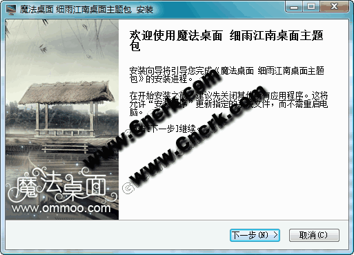 魔法桌面原創(chuàng)xp、vista、windows7通用版細(xì)雨江南桌面主題,江南主題色調(diào)浪漫,有一種煙雨山水的感覺,體現(xiàn)了江南的特點(diǎn)