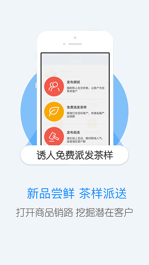 茶商通——茶商線上營銷好幫手。 茶商通是一款專門為茶葉商戶服務的營銷工具 APP,旨在幫助茶商通過微信等新媒體渠道進 行線上營銷和推廣,借助移動社交的紅利,快速打開商品銷路,也便于商戶聚攏人氣,發(fā)掘潛在客戶。