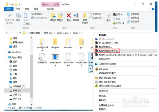將下載到中文語(yǔ)言包復(fù)制到eclipse的安裝目錄中,然后解壓縮。