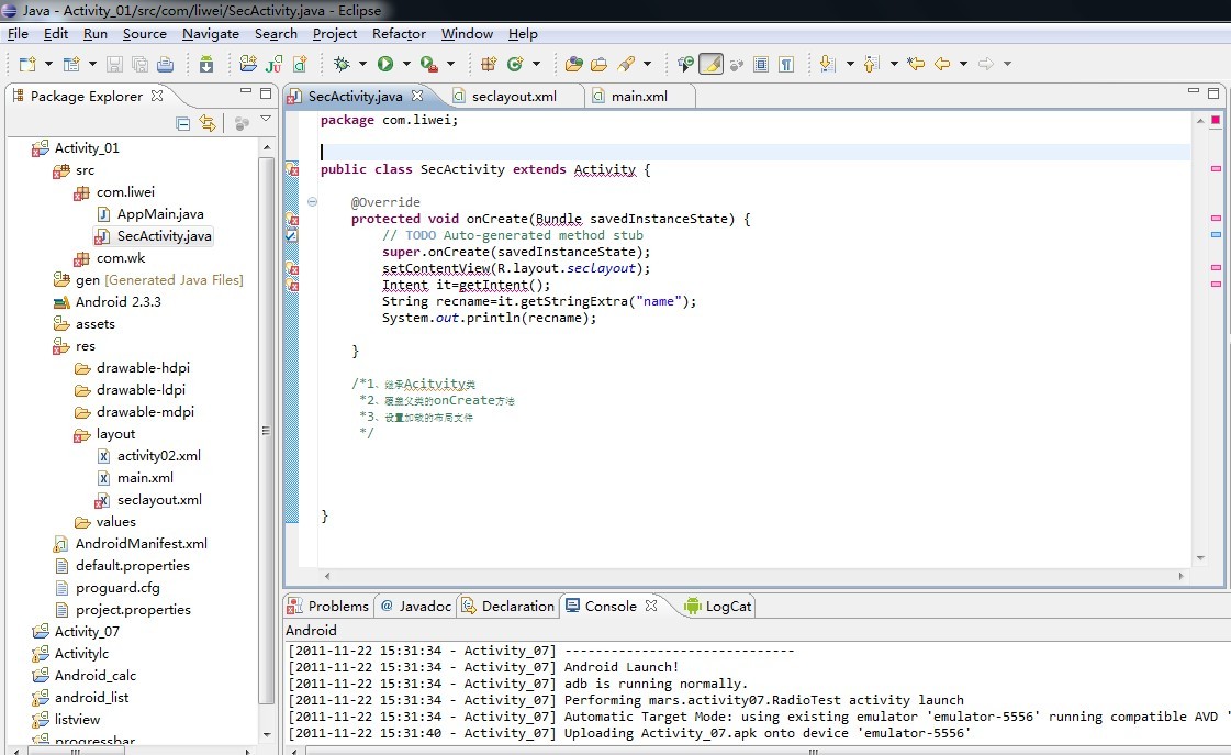 說明:添加/消除//注釋,在eclipse2.0中,消除注釋為Ctrl+\
