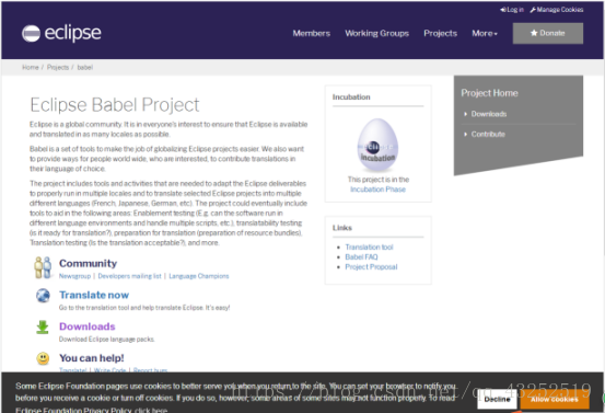 1.到Eclipse的官網(wǎng)上下載漢化語言包,不熟悉Eclipse官網(wǎng)的人可能不太容易找到下載頁面,這里給出了具體地址 http://www.eclipse.org/babel/ 頁面是這樣子的: